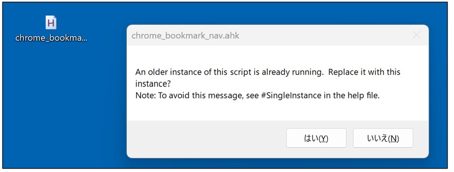 (例:chrome_bookmark_nav.ahk) - ファイルをダブルクリックして実行