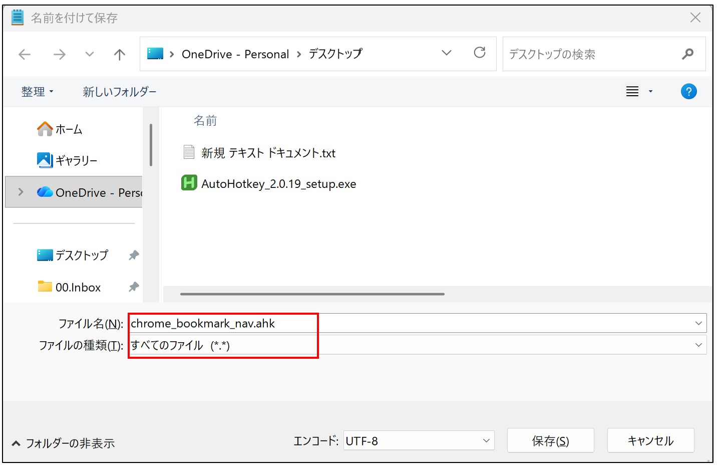 .ahkファイルとして保存
