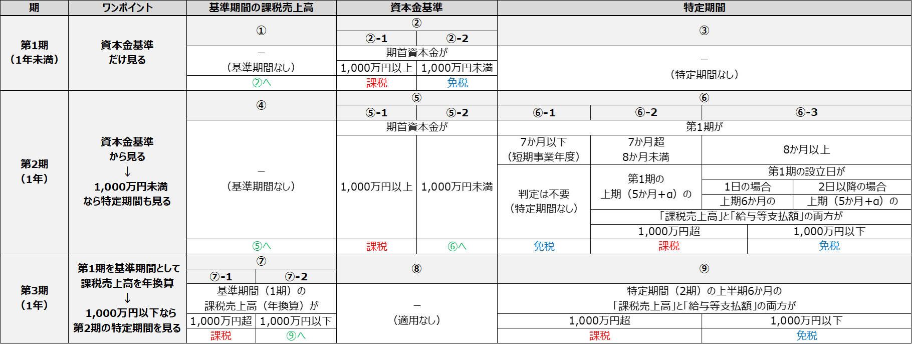 そこで今回は、設立1期目から3期目までの判定を、1枚の表で整理してみます。