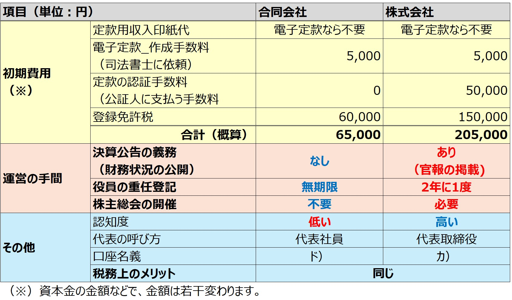 会社形態(株式会社・合同会社)によって多少異なりますが、