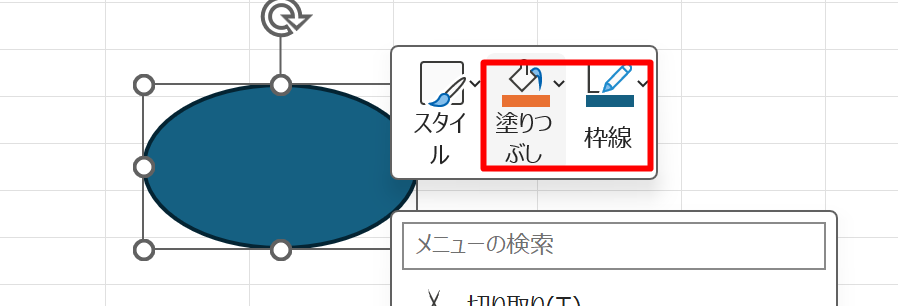 ここでは「塗りつぶし」と「線」の形式の設定をしています。