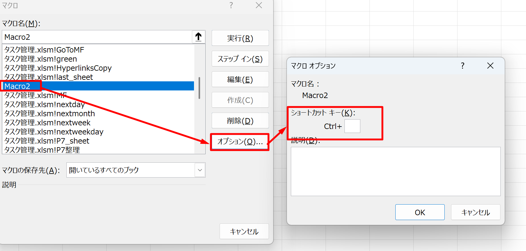 2つ目の方法は、マクロ(操作を記録する)方法です。