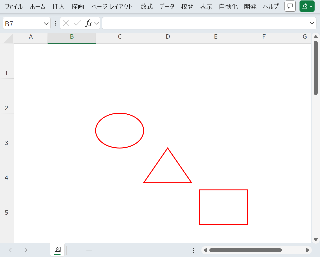 ※楕円・四角など、Excelで選べる図形の種類を表しています