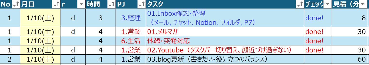 タスク管理において、1つのタスクごとに時間の見積りはしています。