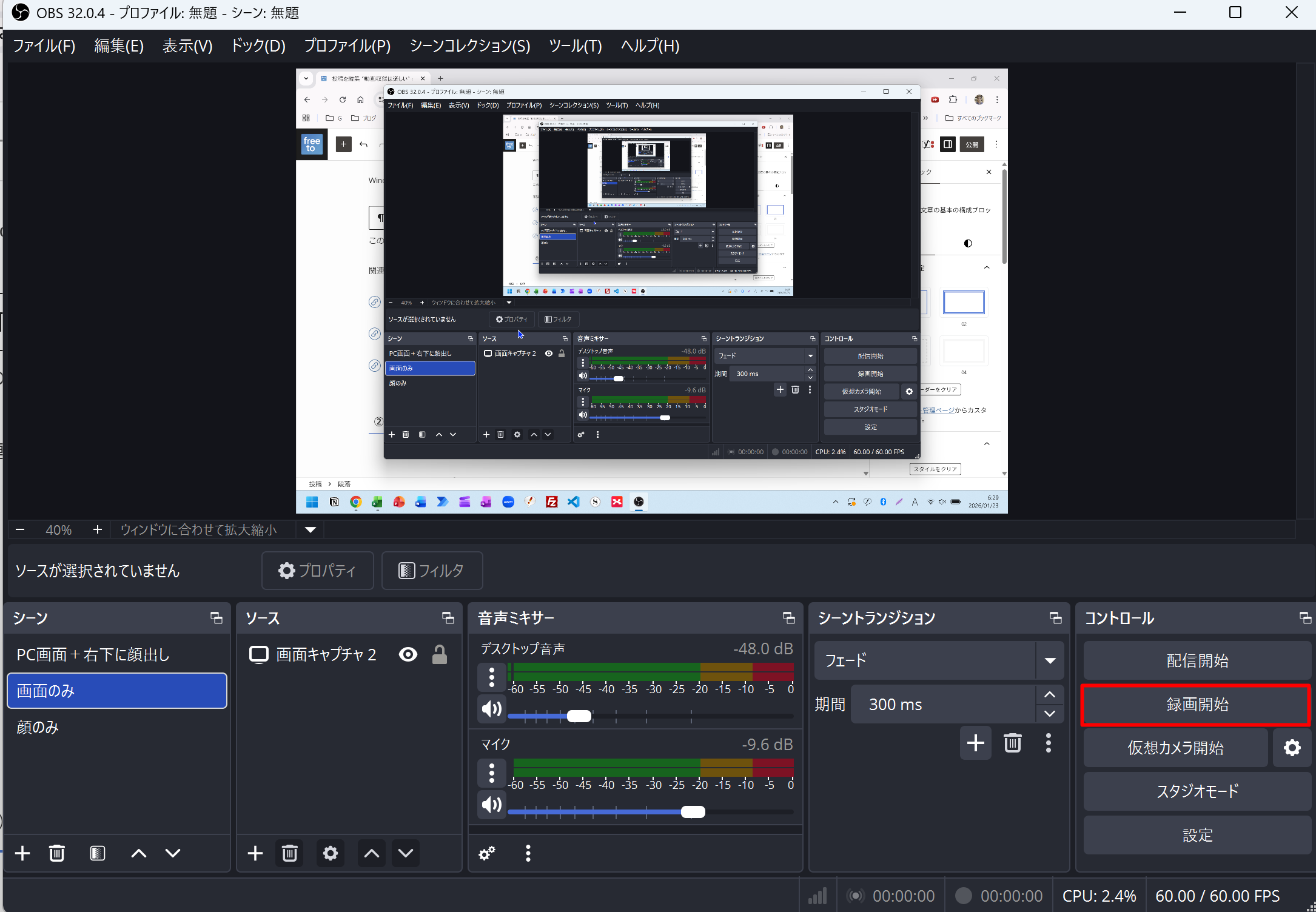 OBSで撮影をします。