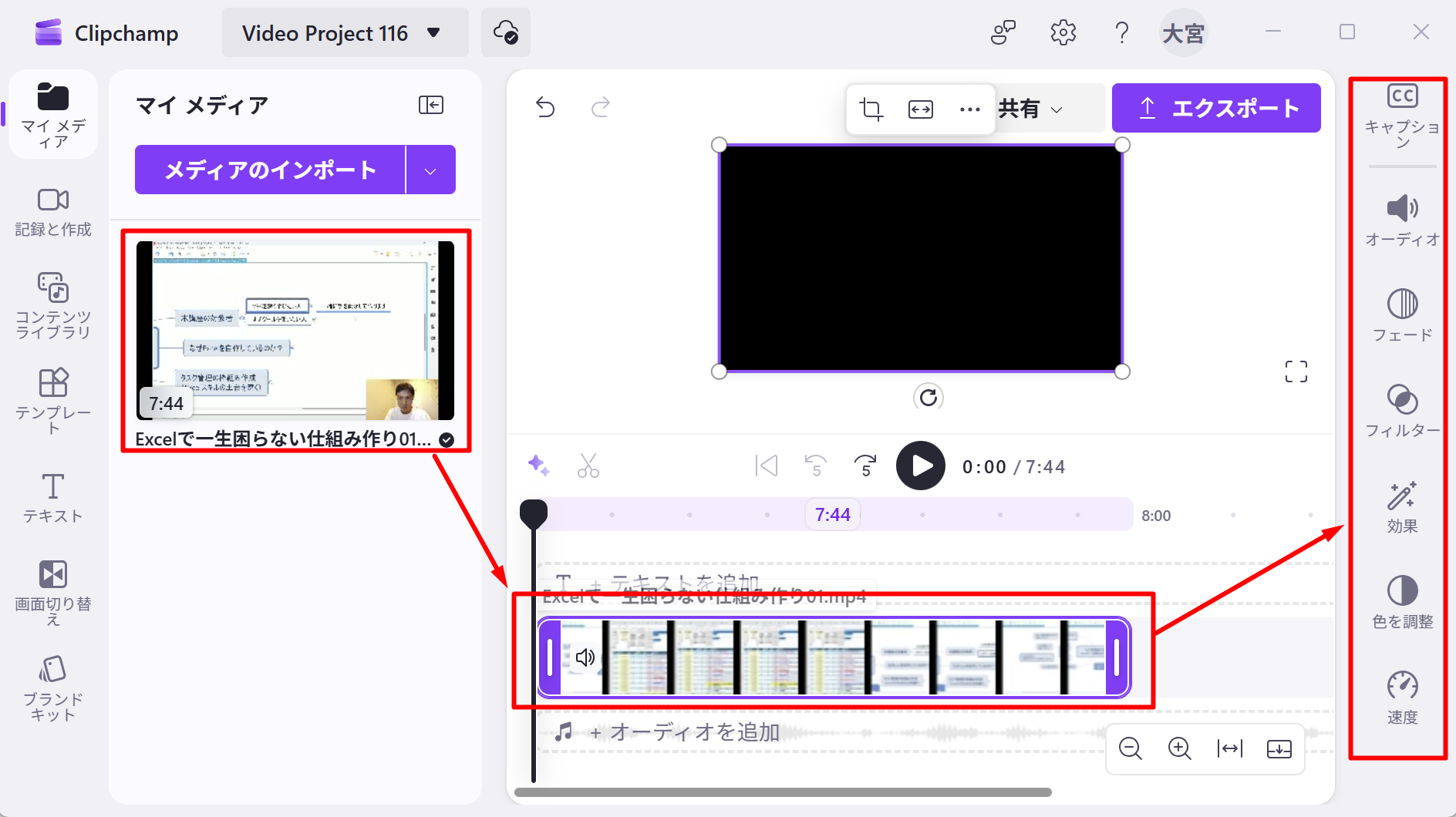 ②Clipchamp(動画編集)※無料(Microsoft365を契約していれば)