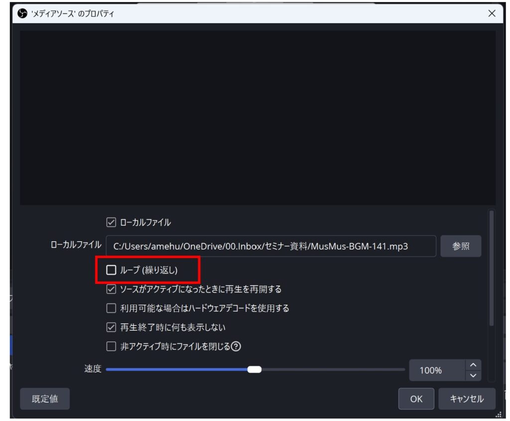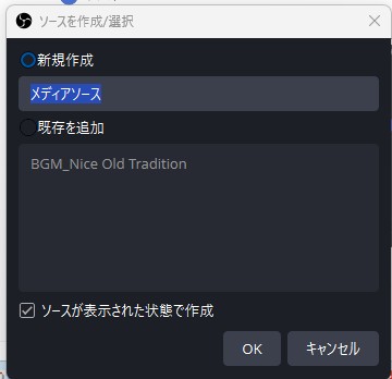 使うBGMが決まったら、OBSで設定を行っていきます。