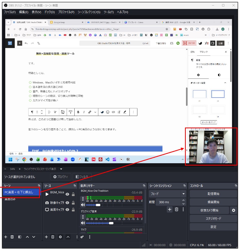 今回は、OBS Studioで『BGMを流しながら動画撮影する方法』をお伝えしたいと思います。