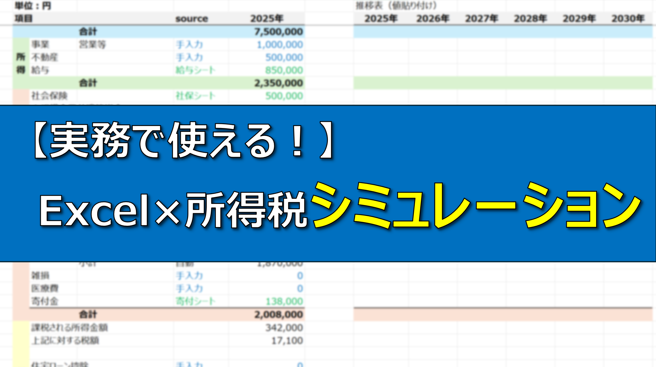 (事業・不動産にかかる収入、所得は所与のものとして扱っています) - あくまでExcelを使ったシミュレーションの講座とご理解ください