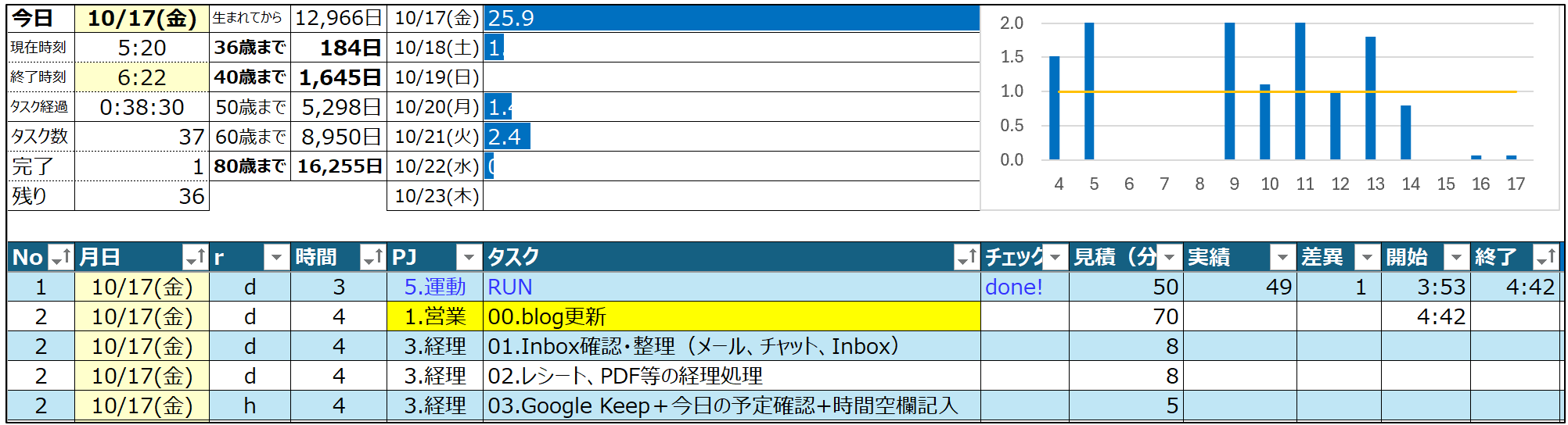 今日の早朝ランは、大体見積りどおりに終わっています。