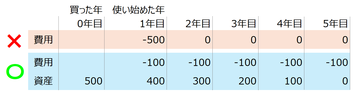 このように、一度資産として計上されたものは、将来の費用になることが分かります。