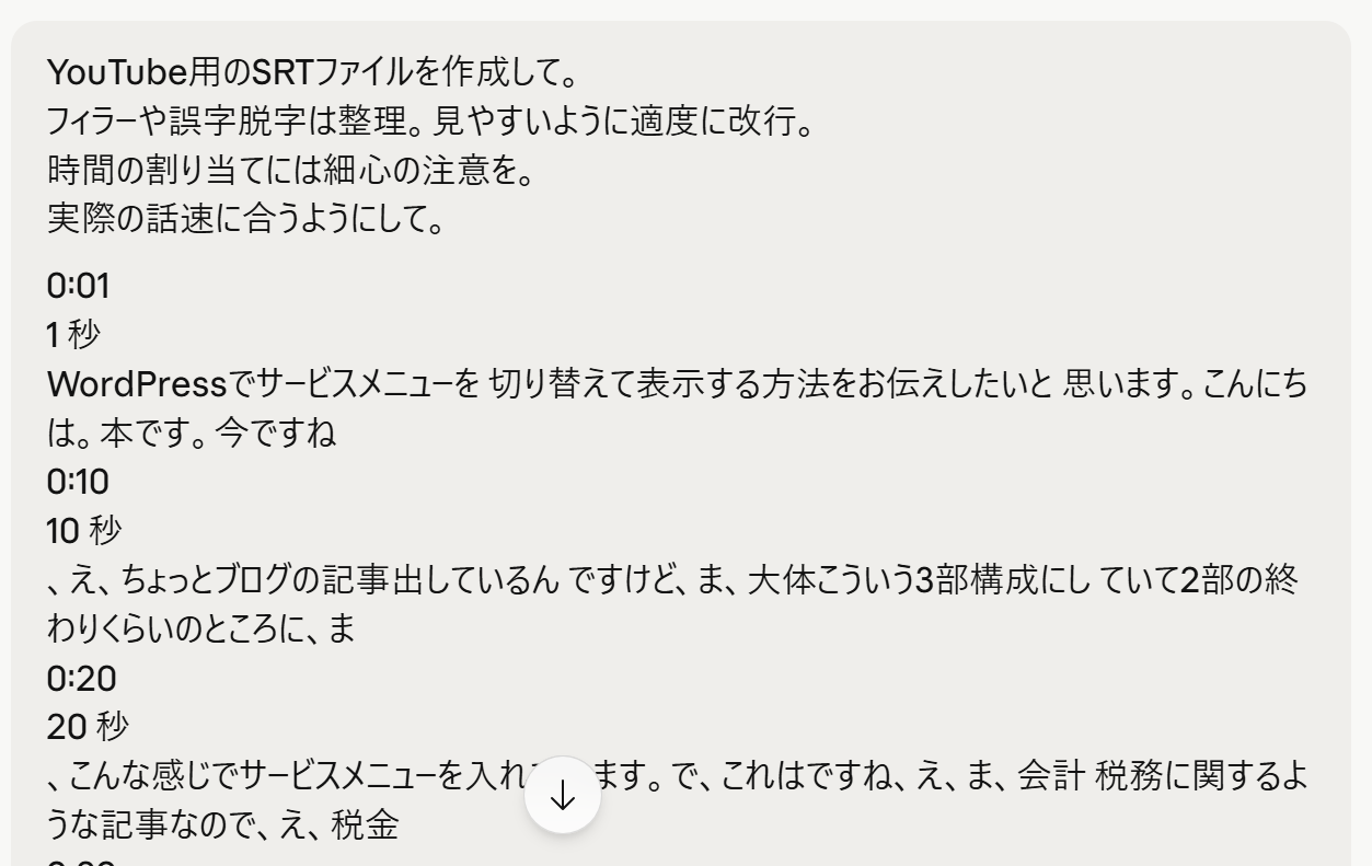 AIにも得意、不得意があり、SRTファイルの作成が安定するのは、